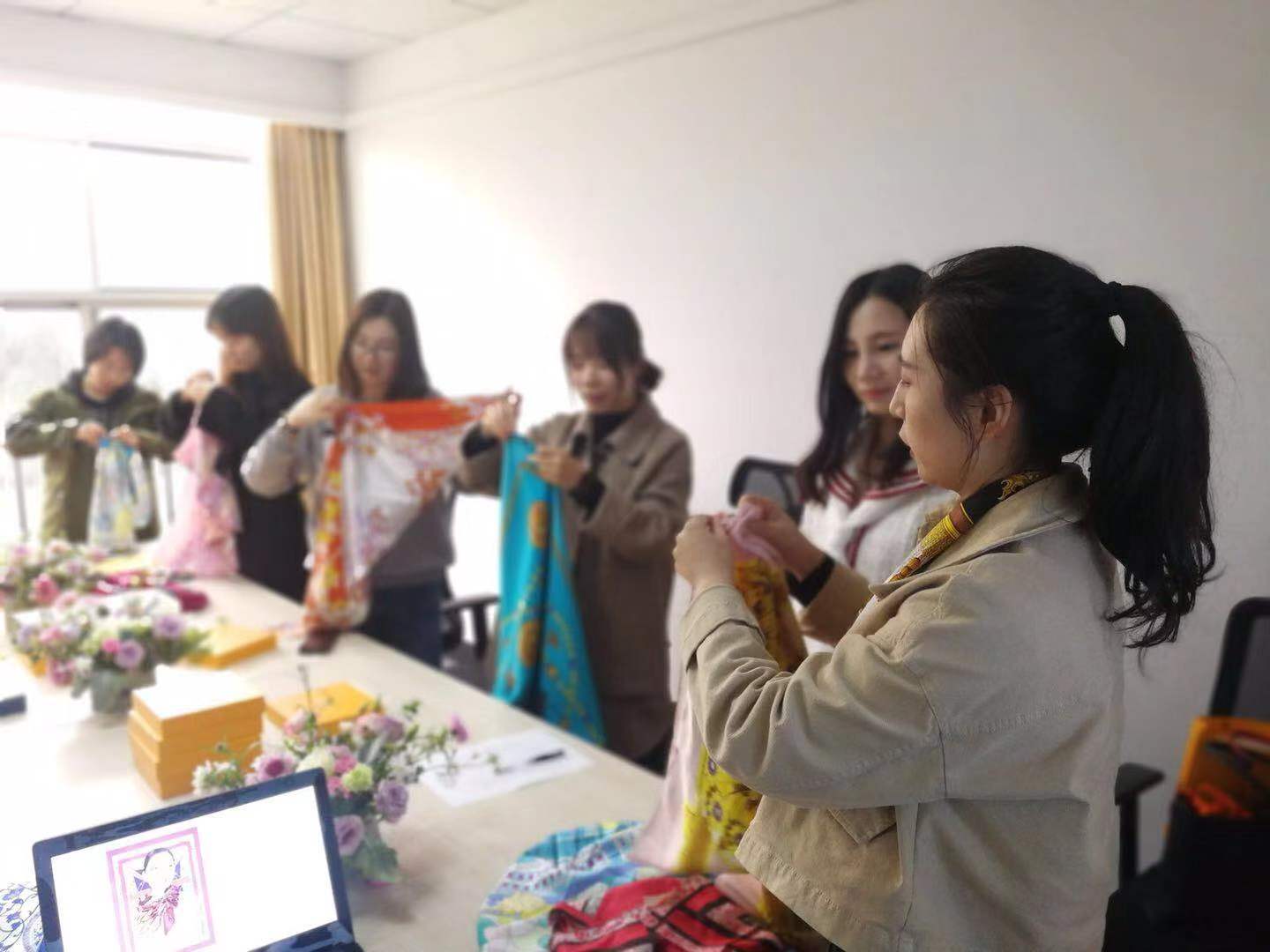 不管是职场还是社交,现代女性的仪表仪态越来越受到重视,大到行为举止,小到面部修饰、穿衣搭配等,都体现了女性的个性魅力。延续三八节的福利,3月16日,公司特邀杭州万事利集团讲师为女职工提供一堂关于丝巾系发、丝绸保养等内容的美丽大使课程。