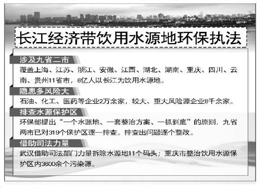 今年5月,环保部启动了长江经济带饮用水水源地环境保护执法专项行动。目前已取得初步成效,长江经济带地级以上城市饮用水水源地的摸底排查已基本完成。