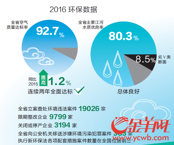 其他方面也在持续改善。如2016年全省水质优良率超八成,重点整治河流水质同比有所好转;一些电子废物拆解地恢复为健康土地……在绿色发展和生态保护上,广东继续发力——《广东省环境保护“十三五”规划》明确提出,到2018年,广东全面达到小康社会环境类指标目标;到2020年,广东率先建成国家绿色发展示范区。