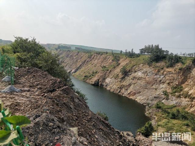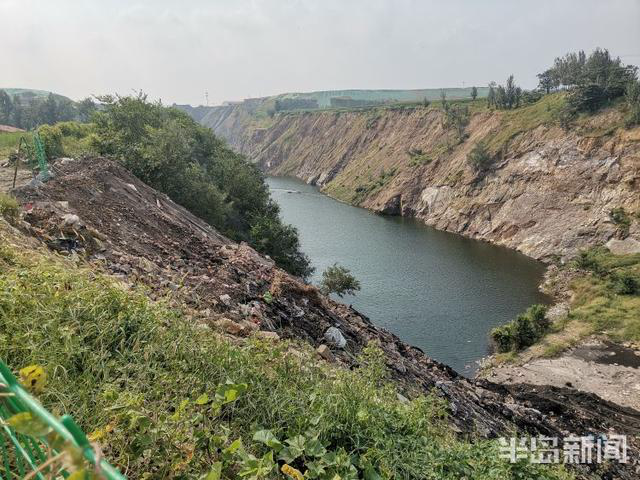 9月7日下午,经过辗转寻找,记者在玉石头村北侧找到了事发矿坑。记者注意到,矿坑长达数百米,宽度也有百米上下,两侧的矿渣堆积如山,长时间的开采让地表出现一道深达数十米的“伤疤”,仿佛“大峡谷”一般,里面的积水深不见底。