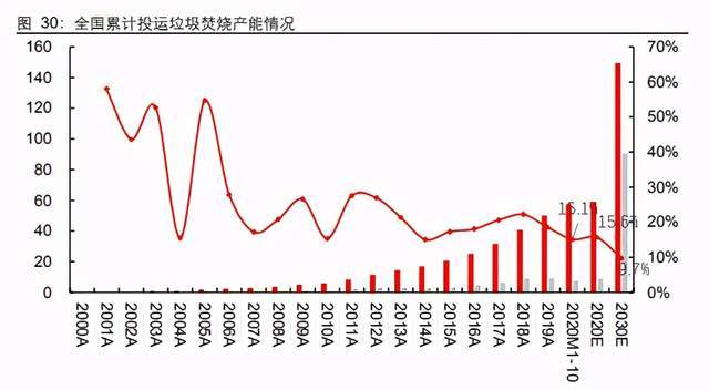 截至 2020 年 11 月 16 日,我国累计投运焚烧项目产能达 57.6 万吨/日,2020 年至今新 增投运 7.57 万吨/日,同比增速 15.1%。 “十三五”规划到 2020 年底规模达 59 万吨/ 日,目前看实现的概率较大。参考相关省份下发的垃圾发电中长期发展规划,预计 2030 年底我国垃圾焚烧累计投运规模有望达到 149.5 万吨/日,即 2021-2030 年我国垃圾焚 烧行业产能复合增速约 9.7%。