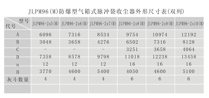 图1.JLPM96(M)防爆型气箱式脉冲袋收尘器外形图(双列)