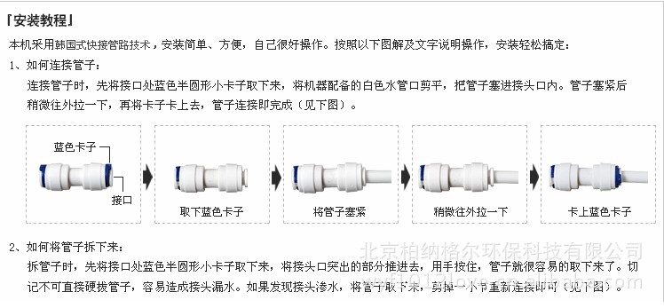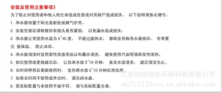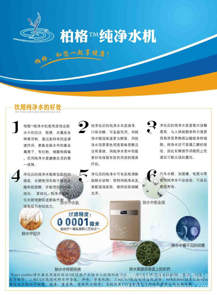 (1) 柏格™纯净水机能有效地去除水中的泥沙、铁锈、水藻及各种悬浮物,通过其特有的逆渗透作