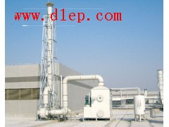 2、结构设计合理:废气净化塔为湿法吸收型净化设备,其功能设计为填料、喷淋分组分级式。当处理废气为酸性时,一般宜采用氢氧化钠(NaOH)为吸收中和液。当处理废气为碱性时,一般用中性水或偏酸性水进行洗涤。其工作原理为:废气由风机压入净化塔内外向夹套组成的均压室,通过匀风格栅使废气匀速进入一级填料功能段,进行一级喷淋,使气液二相得到一次充分接触 ,经一级处理后的废气用由渐扩段减速进入二级填料喷淋功能段,再使废气得到更充分的气液二相接触反应,然后再经脱液器脱液除雾后,尾气由排出口经风道排入大气。净化后的尾气排放符合《大气污染物综合排放标准》GB16297-1996表2的规定。根据以上设计原理和功能要求。