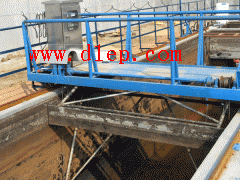 行车式刮泥机适用于给排水工程中平流式沉淀池,将沉降在池底的污泥刮集至集泥槽,并将池面的浮渣撇向集渣槽。可根据用户的要求设置浮渣刮板。按水流方向,可分为逆向刮泥逆向排渣和逆向刮泥同向排渣方式。刮泥机构在不刮泥回程时刮泥耙全部抬起。当回到刮泥的起始位置时,刮泥耙落下,这样周而复始的工作。