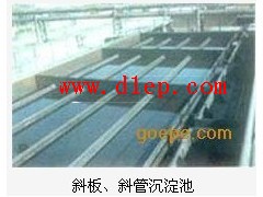 斜管沉淀池是根据平流式沉淀原理,在池内增加许多斜管后,加大水池过水断面的湿周,同时减小水力半径,为此在同样的水平流速V时,可以大大降低雷诺数Re,从而减少水的紊动,促进沉淀,另外加设斜管,使颗粒沉淀距离缩短,减少沉淀时间,沉淀效率大大提高。 斜板沉淀装置是一种高效逆流斜板沉淀设备,其特点是沉淀效率高,池子容积少,操作简单、占地面积少。本装置是消化引进国外同类设备基础上开发出来的。广泛应用于铝加工氧化着废水、铝制罐厂废水电镀混合废水、锅炉房泡沫除尘废水处理及给水净化水处理等均可取得较好的效果。斜板沉淀装置是固液分离设备之一,根据平流式沉淀池去除分散颗粒的沉淀原理,在一定的流量Q和一定的颗粒沉降速度N0条件下,池子的沉淀效率E 与池子平面面积A成正比。在沉淀箱内加设斜板后,大大增加了沉淀面积,从而提高了沉淀效率,斜板还能加大过水断面的湿围,减少水力半,使得在同样的水平流速V下,可大大降低雷诺兹数Re,从而减少水的紊动,促进沉淀。