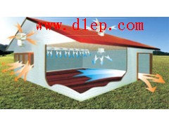 该类型空调器的原理是利用水吸收空气的热量蒸发气化,而使空气加湿和降温,是直接式的蒸发冷却过程。在这一过程中,系统的焓值不变,i=(显热)+(潜热),仅是把空气的显热变成水蒸气的潜热。蒸发式空调器的原理结构:由送风系统、湿膜蒸发器和供水系统构成。供水系统使作为湿膜蒸发器的大面积表面持续为水膜覆盖,空气通过湿膜时与水膜发生充分热交换,水吸收空气热量气化而使空气的湿度上升而温度降低。蒸发型空调器的降温是等焓过程,靠体系内部能量形式的转换而使体系降温。为供应冷风所需的能量仅是为满足送风和供水的需要。传统空调必需使用耗能相当高的压缩机系统,且其风量一般远低于普通的蒸发式空调器,因而其对较大空间的降温速度也较慢。显然,对于需要不断提供新风的开放及半开放场所(如车间、会议厅、餐厅、商场、饭堂等)的适度降温,使用蒸发式空调器较传统空调能明显降低能耗。