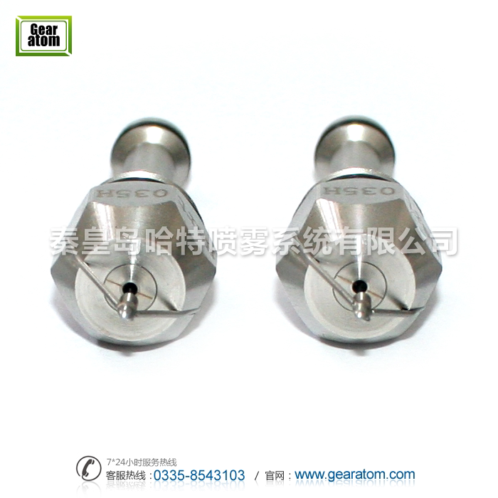 2.机械超声波雾化喷头原理:压缩空气高速通过喷嘴的过度导流孔,在超高的空气速度下,收缩喷口使空气加速至声速,并产生高频率的机械声波,混合液滴,冲击谐振器腔,雾化液滴。并在那里反射,扩增主冲击波。声波能量将被集中在喷嘴主体和谐振器上,一旦产生这种强大的冲击波,水被剪切成相对的小水滴。这些小水滴然后进行激烈的声能转换,变成数千微米极大小的液滴,在声波音爆中被高速空气带走。