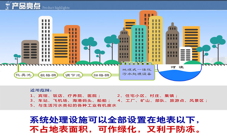 1、埋设于地表以下,设备上面的地表可作为绿化或其他用地,不需要建房及采暖、保温。