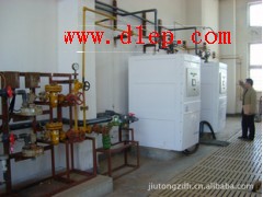 蒸發器主要包括電加熱器、蒸發室、熱水箱、熱水迴圈泵、陰極保護裝置、控制盤及各種自控儀錶等。(1)蒸發室是蒸發器的主要部件,浸泡在熱水箱中。液氯通過盤管進入蒸發室底部,經熱傳導,蒸發為過熱的氯氣,由蒸發室上部出氣口送出。蒸發室內設有檢測氯的溫度和壓力的感測器。(2)熱水箱是儲存傳熱媒質的地方。裡面設置有控制水位、水溫狀態的傳感部件。(3)電加熱器裝在熱水箱外部,用水泵強制迴圈供熱水,以保證水溫均勻,防止蒸發室局部過熱。(4)陰極保護裝置是利用鎂棒作犧牲陽極插入熱水箱中,以適量的硫酸鈉溶于水中,以保持恒定導電性,達到水箱壁和蒸發室壁防腐的目的。(5)控制盤設在蒸發器的上部,設有電源接線端子,容納了所有控制功能及各種檢測儀錶。