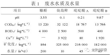 某农药厂排出的废水主要有三种:糠醛、炔敌稗和吡啶酸废水。糠醛废水中的主要污染物是乙酸、糠醛、甲醇和木质素,可生化性较差;吡啶酸废水和炔敌稗废水均以无机盐组成为主,它们的酸性或碱性极强,矿化度、Cu2+含量很高,水质不利于微生物的生存和生长,若直接采用生化法处理,活性污泥很难生存〔2〕。针对该化工厂废水特点,采用两步微电解法—絮凝沉淀进行前期物化处理中试实验,取得了良好效果,为后续生化处理奠定了良好基础。