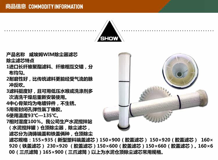 威埃姆WIM除尘器滤芯水泥仓顶除尘器滤芯