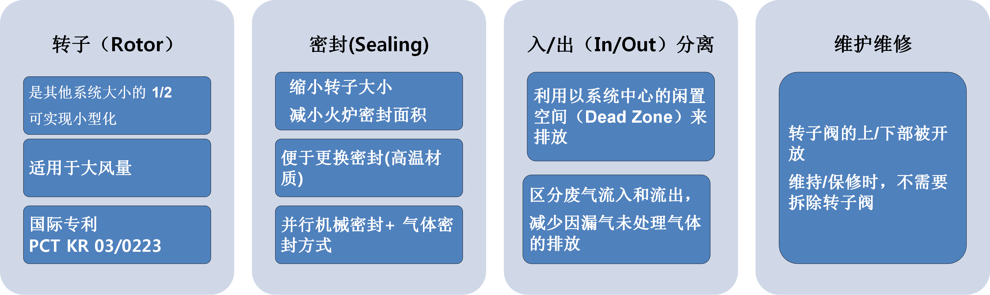 (2)转子大小是普通RTO的1/2,火炉密封面积小,整体结构简单、紧凑,占地面积小