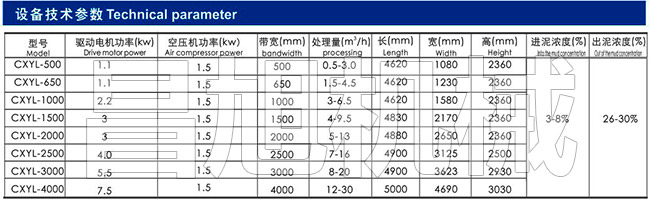 带式压滤机是一种脱水设备。非常适合对污水处理产生的污泥进行脱水处理并压成泥饼。该设备处理能力大,脱水率高,使用寿命长,该机还可以用于浆料浓缩、黑液的提取等工艺处理。该设备严禁用于含有颗粒异物的相关物料进行脱水,否则会损坏滤带。
