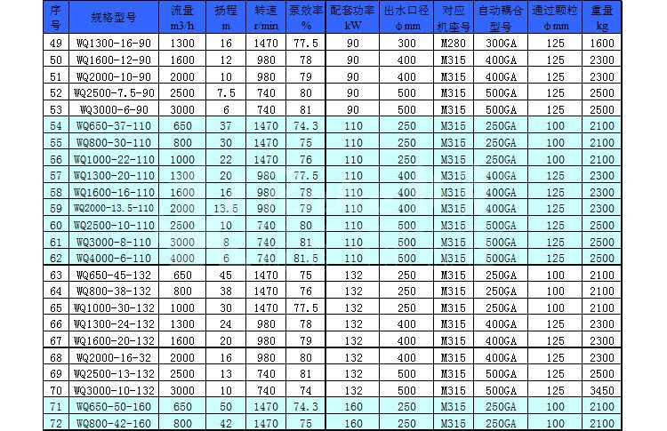 1 采用大通道抗堵塞水力部件设计,能有效地通过直径 25~125 毫米固体颗粒;