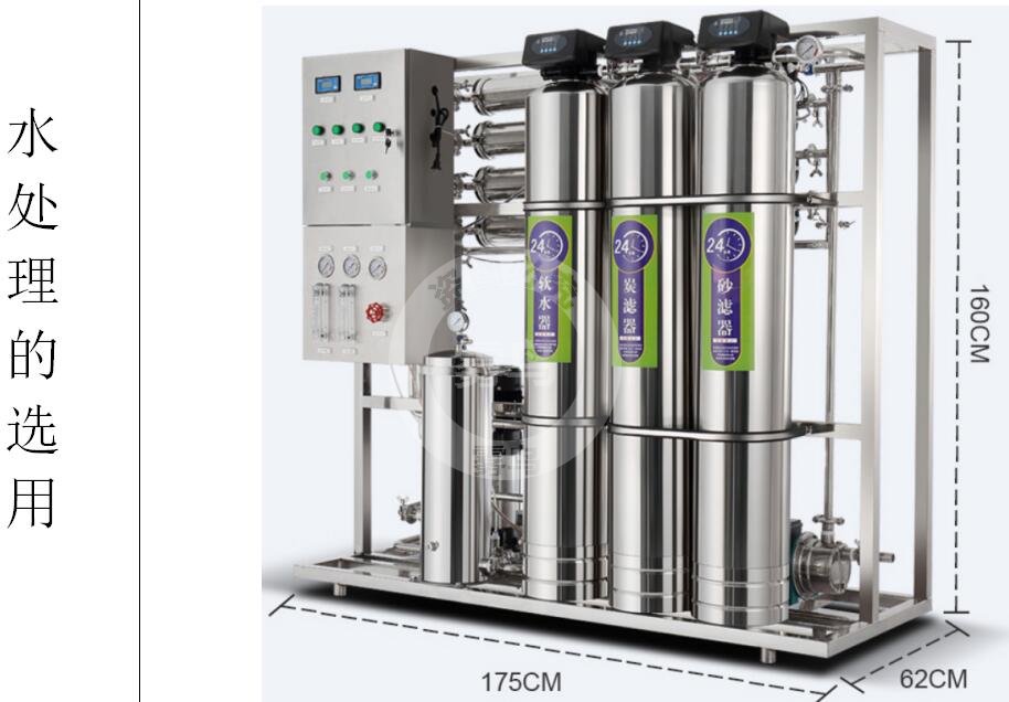 9、水处理系统:采用三级离子交换+RO膜处理,达到纯净水级别,增加设备和喷头的使用寿命性。过滤罐体采用304不锈钢罐体。