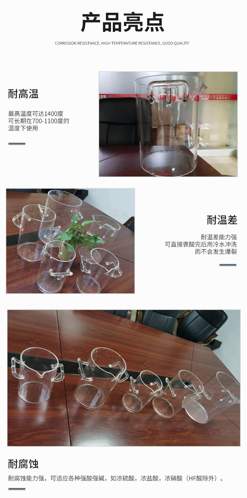 深圳厂家耐腐蚀高温石英烧杯 耐腐蚀石英杯 耐高温石英吊酸篮