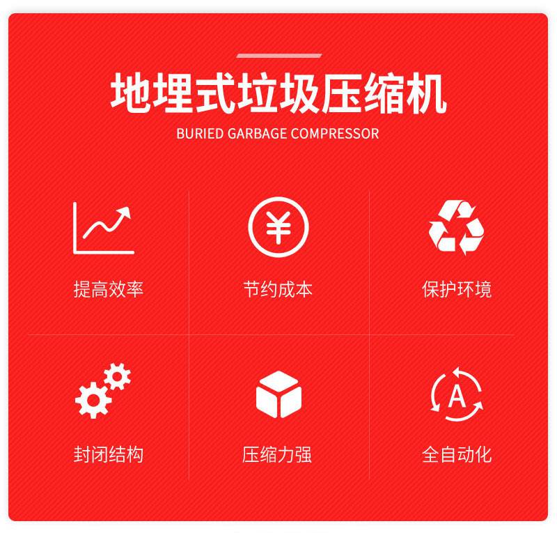 地埋式压缩垃圾中转站的垃圾箱体集卸(出)料、压缩、储存为一体,利用地下空间将收集的垃圾在密闭箱体内进行压缩处理,地坑式压缩垃圾中转站仅有上盖板露出地面,上盖板可与周围环境协调装饰,达到融为一体的效果,使城市面貌更加美观;地坑式压缩垃圾中转站利用地下空间将垃圾处于恒温箱体内,垃圾不易腐烂,压缩垃圾产生的污水经排污管道直接流入污水井内,然后由污水泵排到城市污水管网。