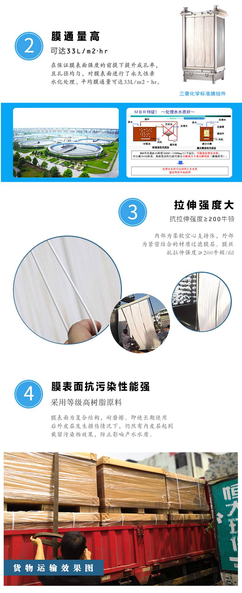 4、平均过滤通量20-25L/M2/H,容积率高,装置可以节省占地面积,实现更高的容积率。